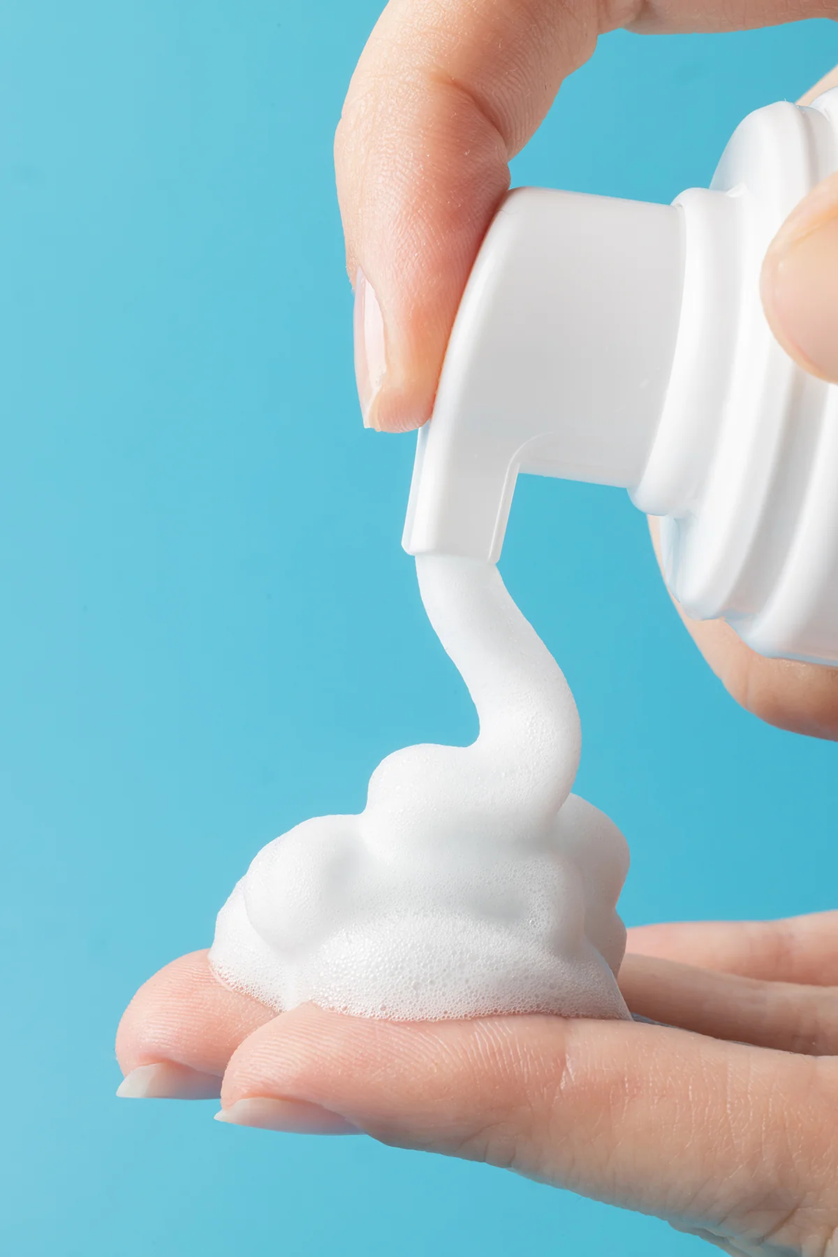 2. Нанесите 2–3 нажатия на дозатор AHA Foamer и аккуратно помассируйте лицо и шею, избегая нежной области вокруг глаз.